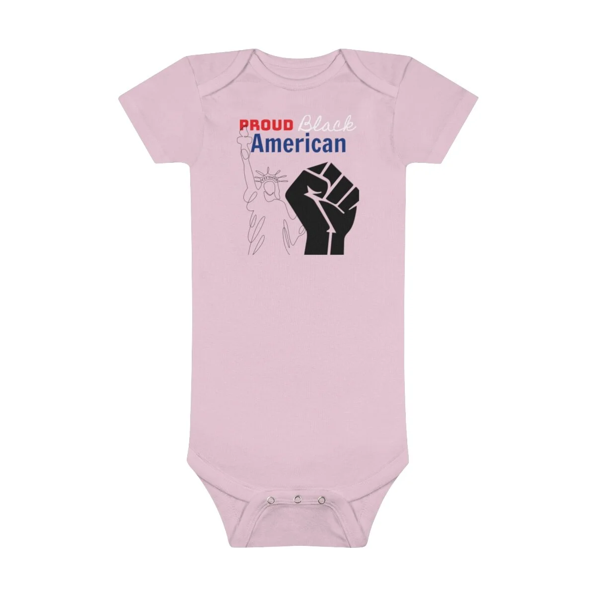 Short-sleeve Black American Heritage Onesie® is built from 100% cotton. This makes for a comfortable, secure fitting for young black warriors and she-warriors. The neckline is constructed with a lap shoulder built for world domination. The bottom has a snap closure - designed with easy changing in mind. Both legs have ribbed openings for stability.